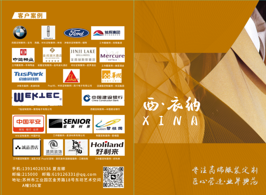 経営範囲:各種事業単位に職業服のカスタマイズサービスを提供し、サービスの顧客は各種中外資企業、金融証券、銀行保険、ホテルクラブハウス、不動産不動産、大学院所、タバコ電力、博物館、観光地、弁護士クラブハウス、投資信託、国営企業、事業単位、政府機関、広告コンサルティング、商業科学技術会社などを含む。