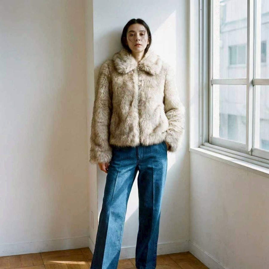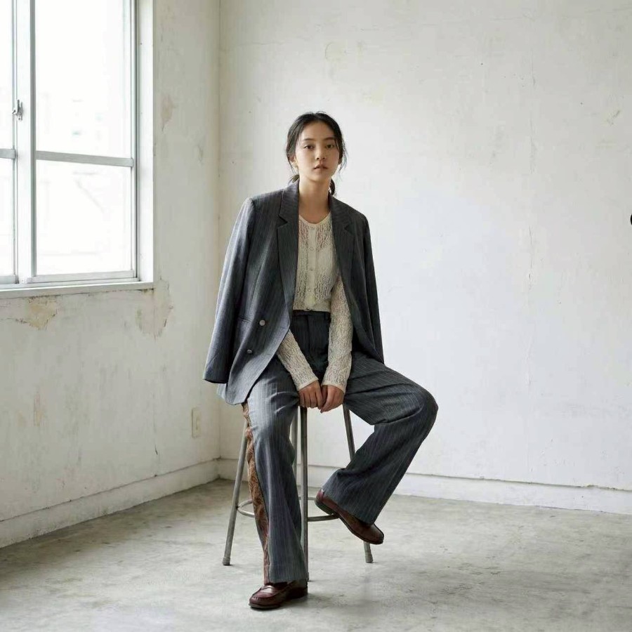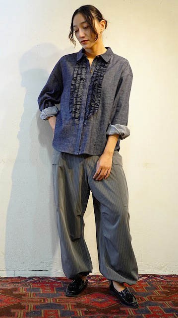 レディース デニムフリンジシャツ+スーツ生地カーゴパンツ