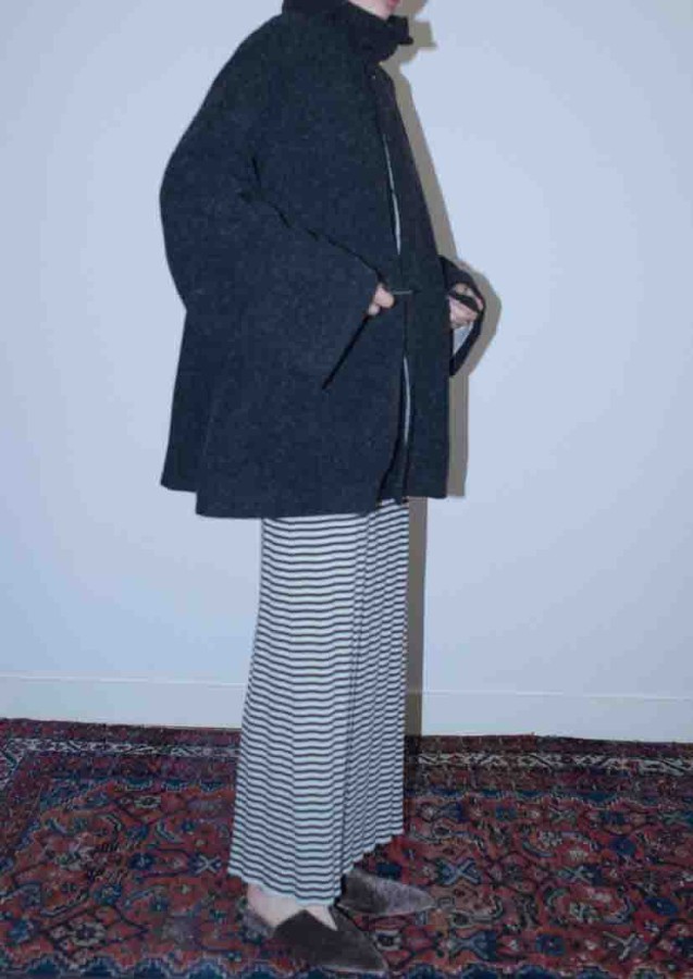 ウールジャケット+ボーダーワンピース
