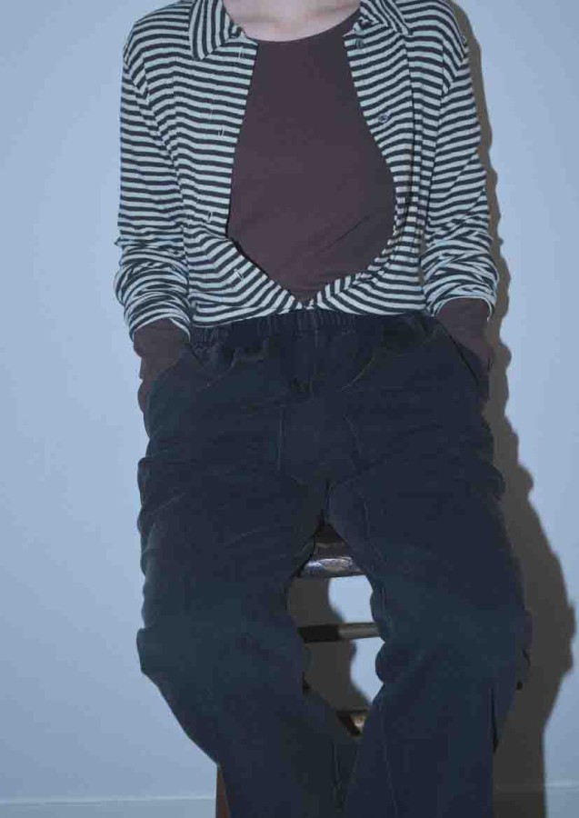 ボーダーカーディガン+ウールパンツ