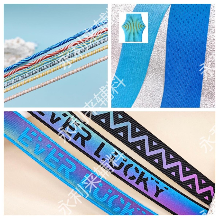 弊社は、衣料用付属品の研究・開発・製造を専門とする企業でございます。中国の広東省中山市、ベトナムに自社工場を持っております。主な製品として、織り込みテープ、編みテープ、ジャカードテープ、紐、ゴムベルト及び金属パーツ等の資材を幅広く取り扱っております。